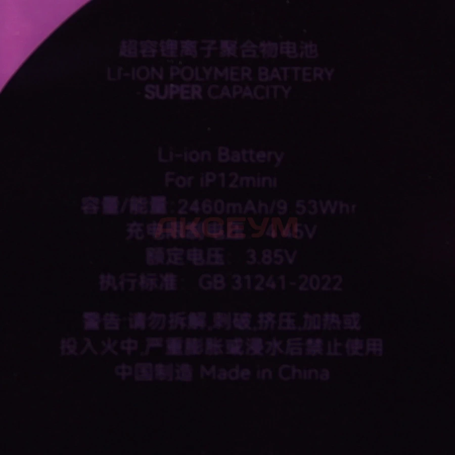 Аккумулятор для iPhone 12 mini (без ошибки/усиленный 2460 mAh) - JCID