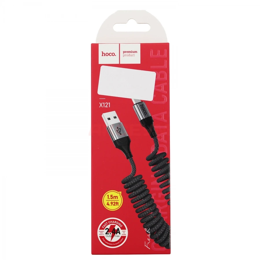 Кабель USB - MicroUSB Hoco X121 (2.4A/1.5 м/пружина) черный